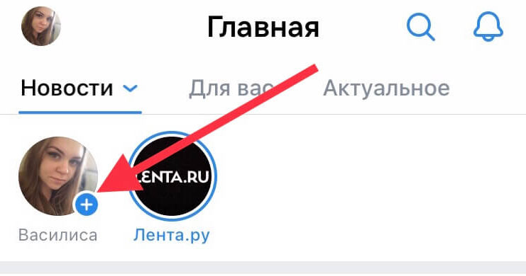 Шаг 1. Заходим в приложение и на верхней панели нажимаем знак «Добавить историю».