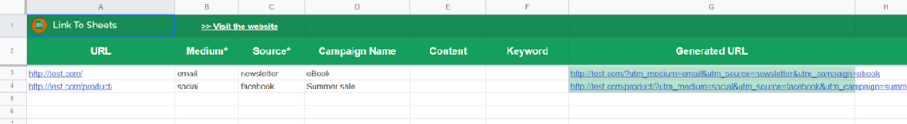 Если у вас мало объявлений, вы хорошо знаете значения всех параметров и вам не жалко времени, можно написать UTM полностью вручную. Чуть более автоматизированный способ создания ссылок – применение Google Таблицы или таблицы Excel с формулой, конструирующей метку из отдельных параметров.