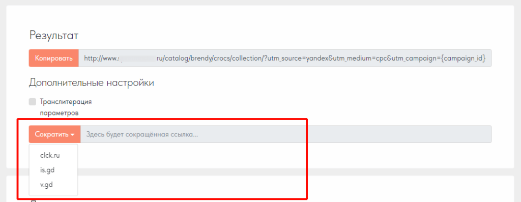 Ссылка с UTM часто выглядит большой и громоздкой. Иногда для повышения ее привлекательности используют сервисы по сокращению длины меток. Они перекодируют текст ссылки, делая его меньше, но не влияя на запись данных в счетчике. Вот несколько сервисов для сокращения ссылок: clck.ru, is.gd, v.gd. Многие генераторы UTM уже содержат в себе такой «сокращатель». Например, Tilda умеет сокращать сразу несколькими способами.