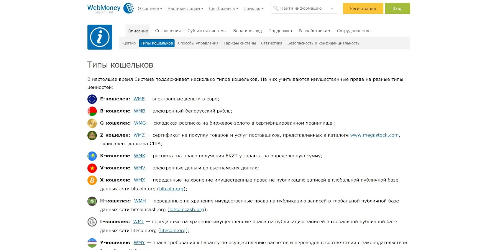 Типы кошельков в WebMoney