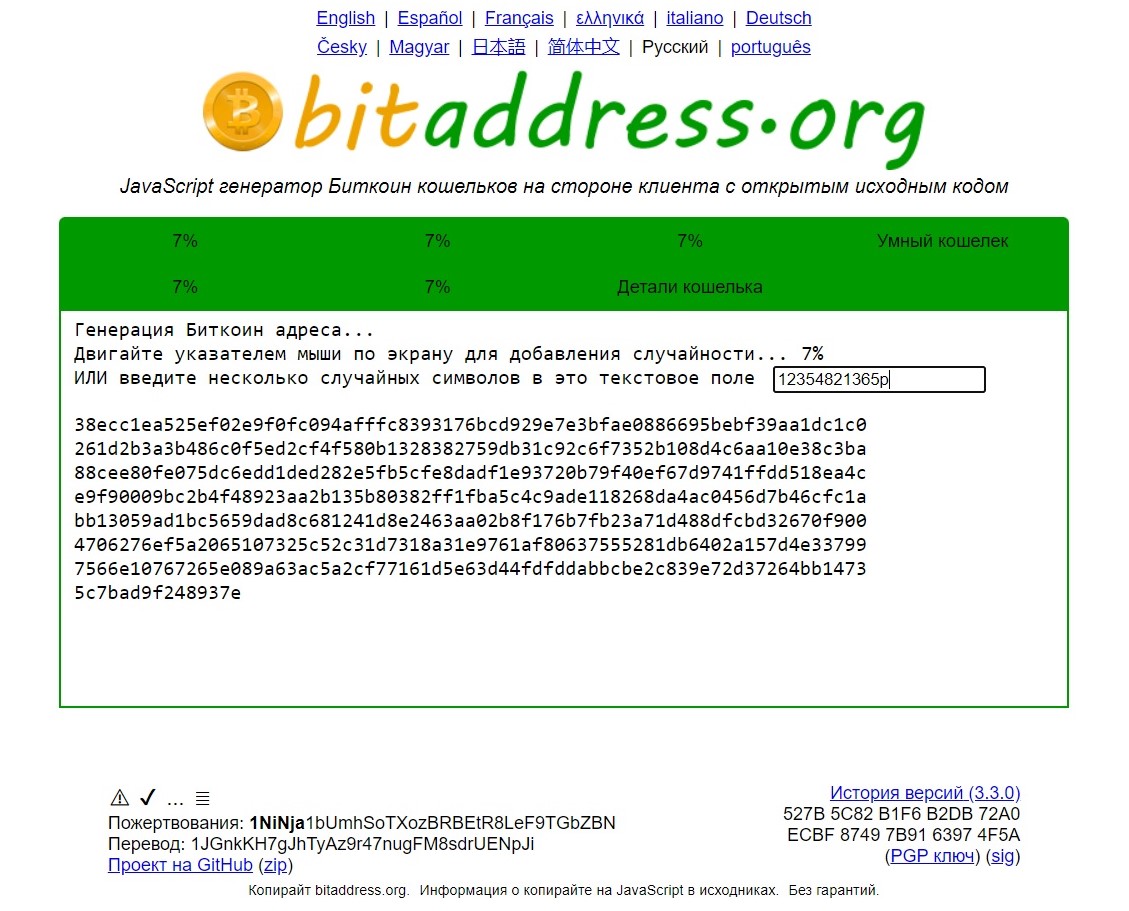 Например, Bitaddress не хранит конфиденциальную информацию и предлагает варианты ключей для печати с QR-кодами. Всё, что нужно, — ввести данные в окошко, сохранить и распечатать их. Храните листок с кодами в безопасном месте, желательно в ламинированном виде.