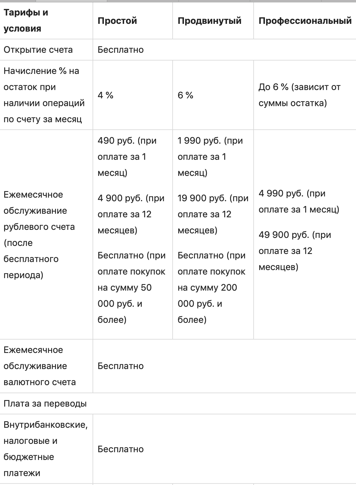 - Начисление процентов на остаток по счету (до 6 %, зависит от тарифа).