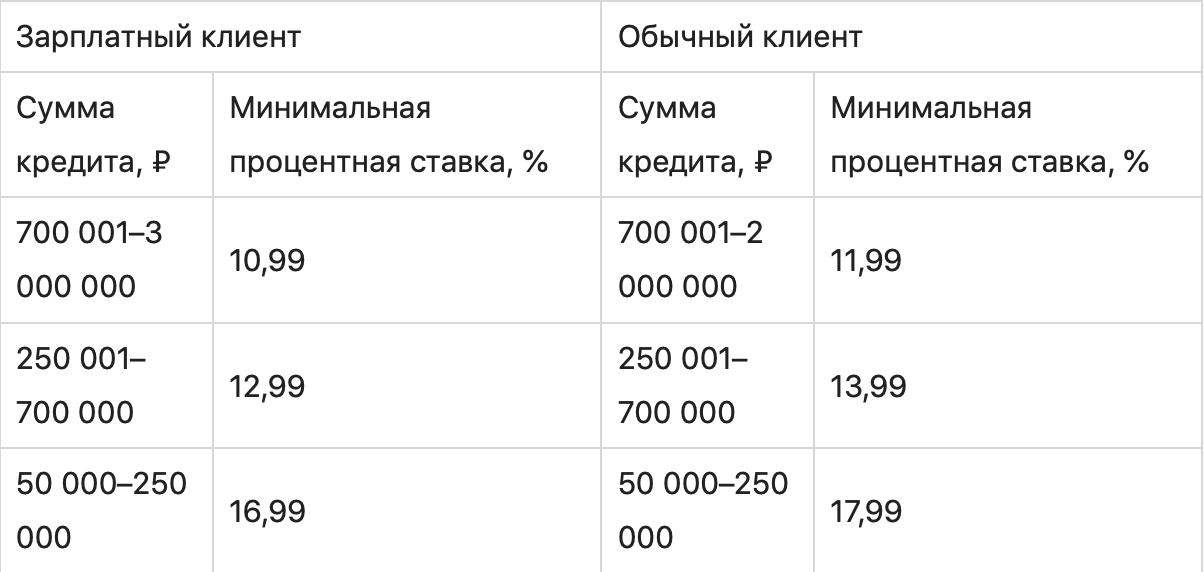- процентная ставка – от 9,9 до 24,9 % (определяется индивидуально);