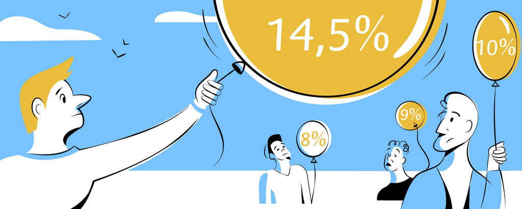 - Размер процентной ставки зависит от статуса заемщика, наличия договора страхования и суммы займа.