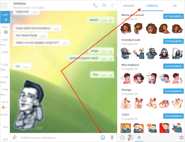 - Внутри любого чата выбрать специальную иконку и добавить понравившиеся наклейки в свой каталог.