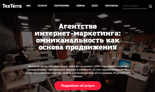 Digital-агентство TexTerra – очень популярная компания, которая занимается производством контента, разработкой и обслуживанием сайтов, продвижением, SEO, SMM и т. д. В общем, это специалисты по интернет-маркетингу.