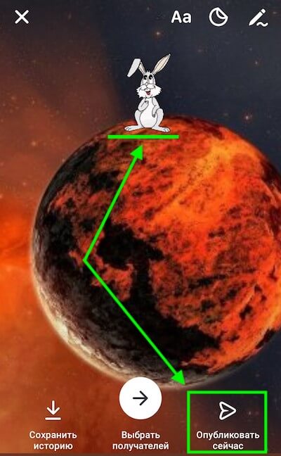 Шаг 4. Выбираем местоположение гифки в Истории и жмём «Опубликовать сейчас».
