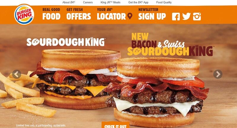 Яркий пример – Бургер Кинг. Большие и яркие изображения вкусных бургеров на главной странице – как можно не захотеть? Но обратите внимание на шрифт, цвета оформления. Они как нельзя лучше отвечают духу бренда – жизнерадостному, немного насмешливому, позитивному. Все вместе задаёт нужное настроение.