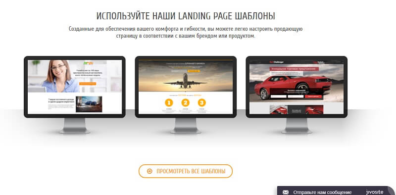 Этот конструктор лендингов предлагает посмотреть на лучшие шаблоны прямо на главной странице, и приглашает в раздел с шаблонами – два зайца одним выстрелом.