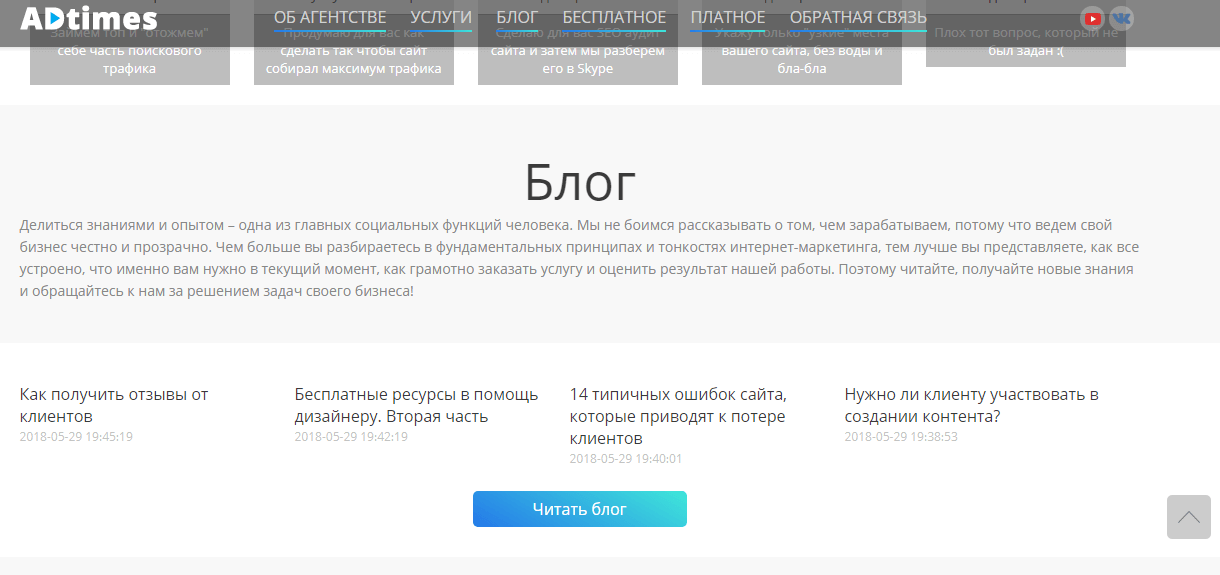 Вот яркий пример подобного подхода – на главной видны свежие публикации из блога. Высока вероятность, что посетитель заинтересуется и перейдет дальше. Плюс к просмотрам страниц и среднему времени пребывания на сайте.