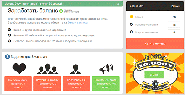 По сути, сервисы, с помощью которых можно заработать в интернете, не совсем соотносятся с темой статьи, однако, мы все же проверили один популярный сайт, на котором раньше можно было получить голоса за выполнение заданий.