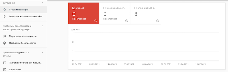Удобство для мобильныхВсем страницам сайта присваивается один из двух статусов — «Ошибка» или «Страница без ошибок». Первый статус свидетельствует о том, что раздел плохо отображается на смартфонах, мобильных телефонах и планшетах, а второй — о том, что проблем нет.