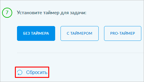 Обратите внимание, что внизу окна слева находится кнопка “Сбросить”. Нажмите ее, если хотите отменить настройки задания.