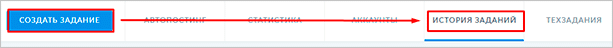 Обратите внимание, что при этом мы автоматически переключились в пункт меню “История заданий”.