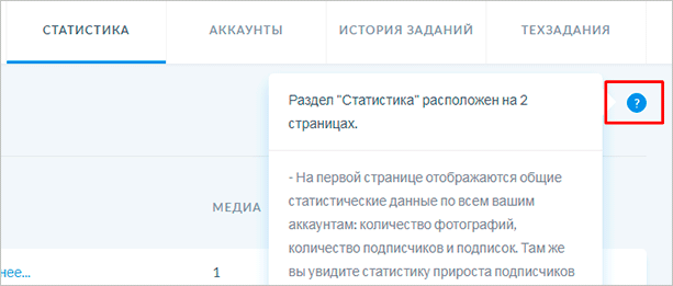 Также короткую информацию о страницах и выполненных работах можно получить в разделах “Статистика” и “Аккаунты”.