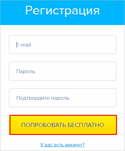 В появившейся форме напишите свою действующую электронную почту и пароль. Желательно, чтобы он был уникальным и состоял не менее чем из 8 символов. Когда заполните поля, снова нажмите на желтую кнопку.