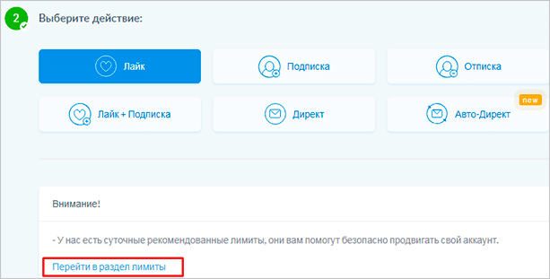 На экране видим предупреждение о лимитах, перейдите по ссылке и внимательно ознакомьтесь с информацией, которую подготовили создатели Инстаплюс. Там все очень хорошо и подробно расписано.