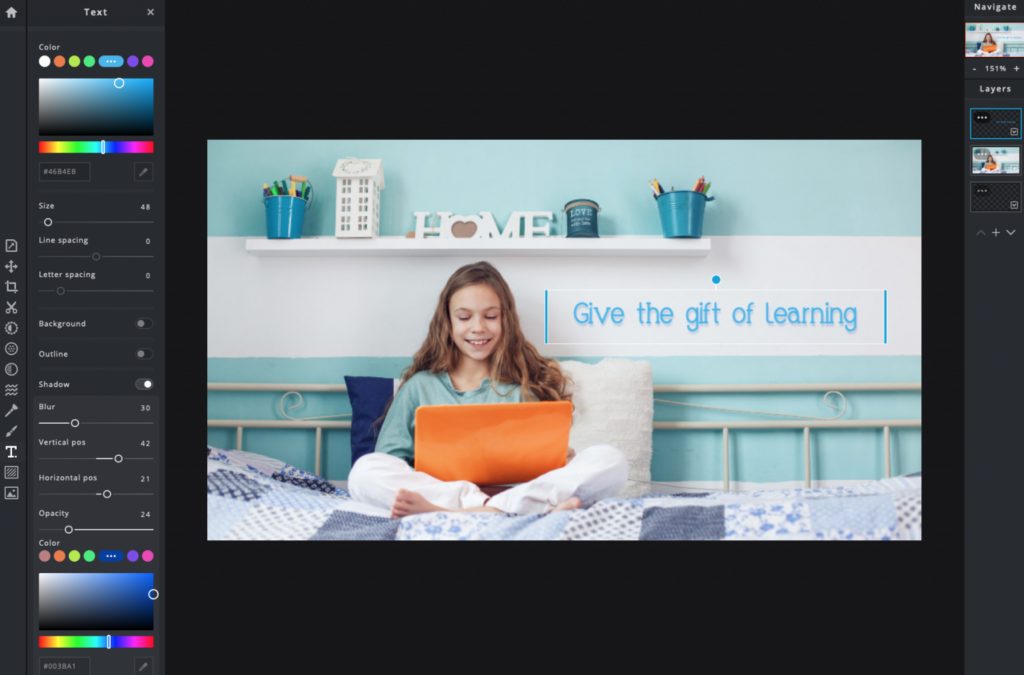 Pablo — более простой инструмент по созданию изображений для соцсетей. Только веб-версия, зато без ограничений и платных опций.