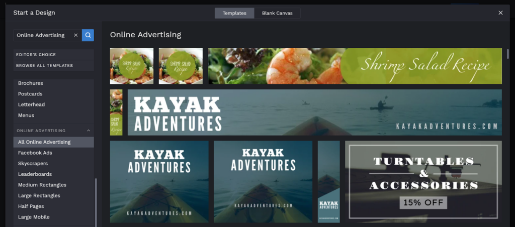 - более 60 тысяч готовых шаблонов: презентаций, логотипов, постов для социальных сетей, шапок для YouTube и т. д. Можно выбрать более подходящий или создать дизайн с нуля;