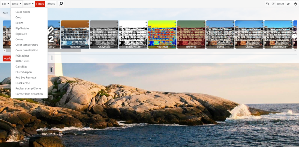 Photo Editor — простой онлайн-редактор для базовой обработки фото или картинок. Только браузерная версия.