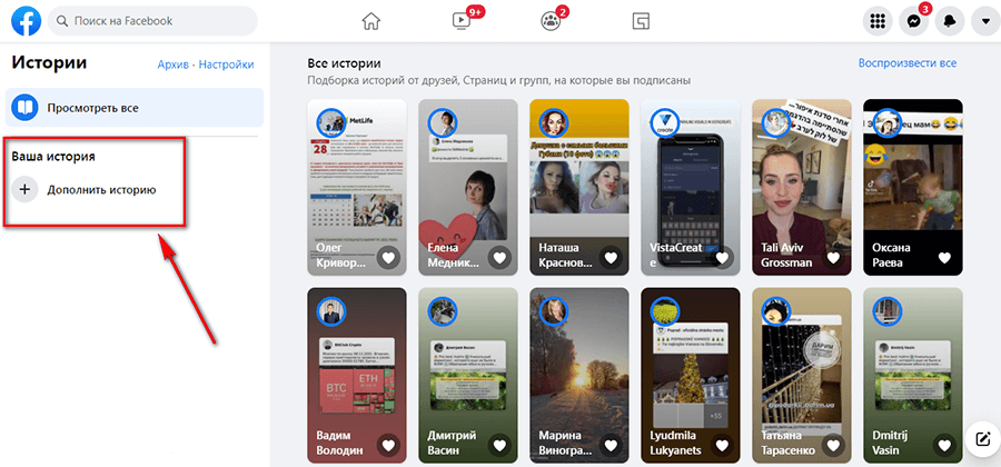 Если в веб-версии ФБ нажать на стрелочку рядом с крайней правой сторис, откроются все истории. А в приложении их надо листать влево.