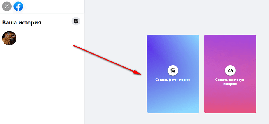 Чтобы создать сторис с ПК нужно открыть главную страницу Facebook (вы должны быть авторизованы) и нажать «Создать историю».