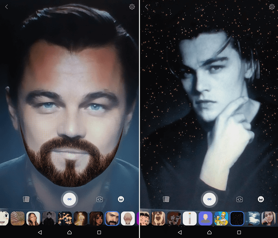 Фильтров и масок очень много — листаем влево, чтобы посмотреть все. Тут есть цветокоррекция, маска-предсказание, оверлеи.