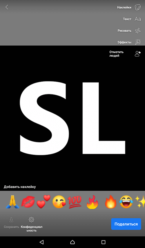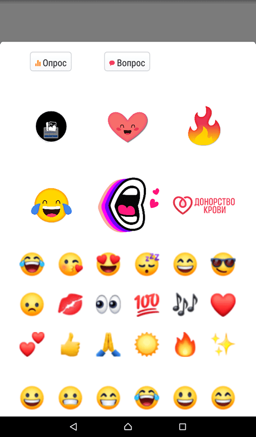 В нижней части редактора есть несколько наклеек в виде эмодзи. Кликаем на любую, и она добавляется в сторис.
