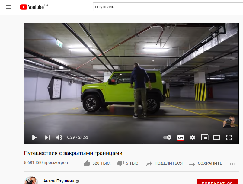 Вот, например, известный путешественник и блогер Антон Птушкин отправился в путешествие на компактном внедорожнике Suzuki Jimni. С момента выпуска ролик просмотрело более 5 миллионов пользователей YouTube.