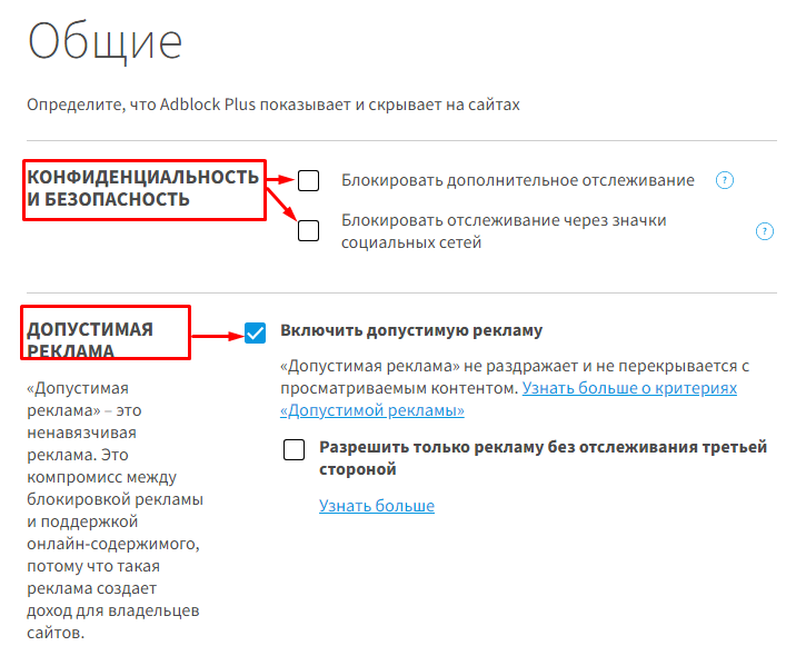 Кроме отключения рекламы Adblock Plus позволяет пользователю управлять конфиденциальностью и безопасностью – блокировать дополнительное отслеживание и отслеживание через значки социальных сетей.