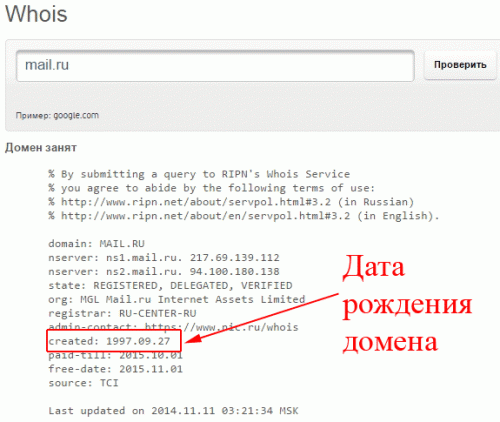 Историю доменного имени можно узнать у Яндекса и Гугла – достаточно вбить в поисковую строку название сайта.