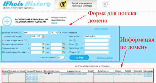 - Выберите функцию «По всей истории WHOIS» (для расширенного поиска требуется бесплатная регистрация на nicid.ru).