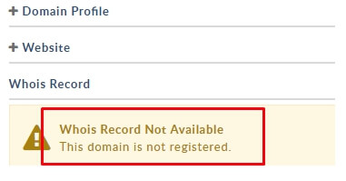 Принцип работы следующий: пользователь переходит на главную страницу платформы и вводит доменное имя. В ответ демонстрируется пустая таблица с надписью Whois Record Not Available после графы Whois Record?