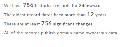 На скриншоте видно, что взятый в качестве примера домен 3dnews.ru имеет как минимум 756 важных изменений.