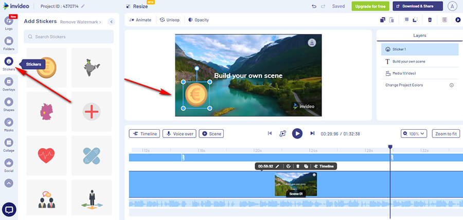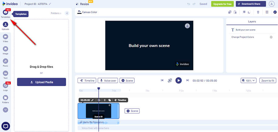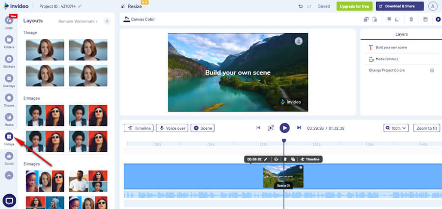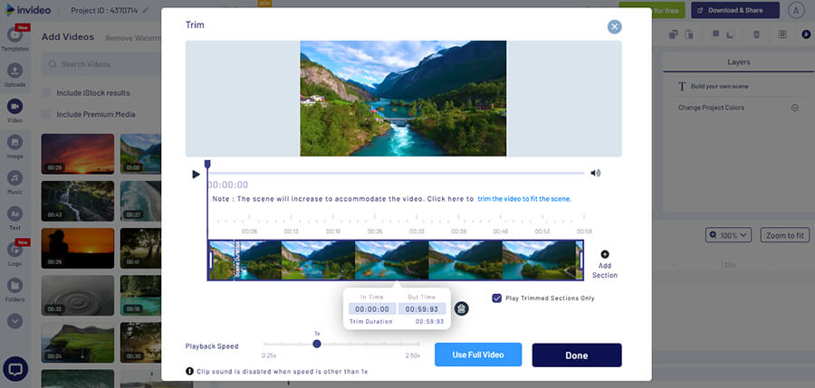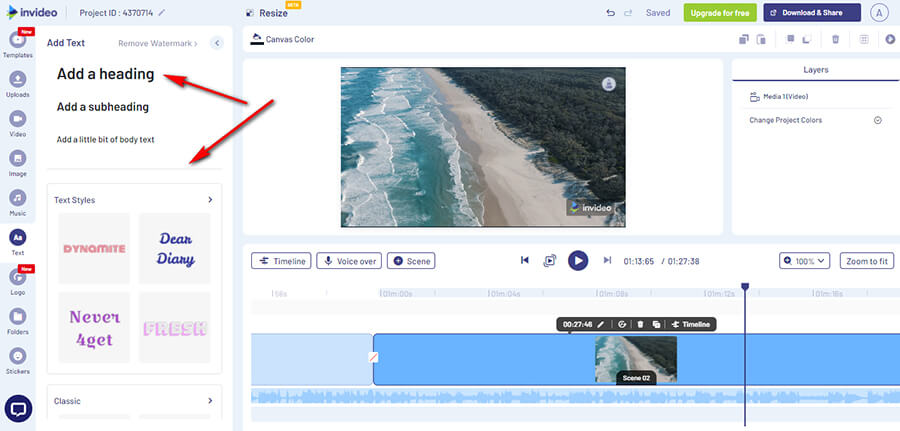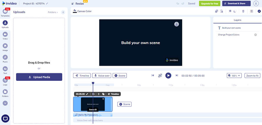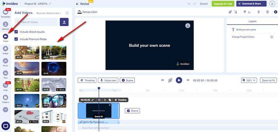 - Использовать готовую библиотеку медиафайлов (Video, Image) и встроенные инструменты inVideo.