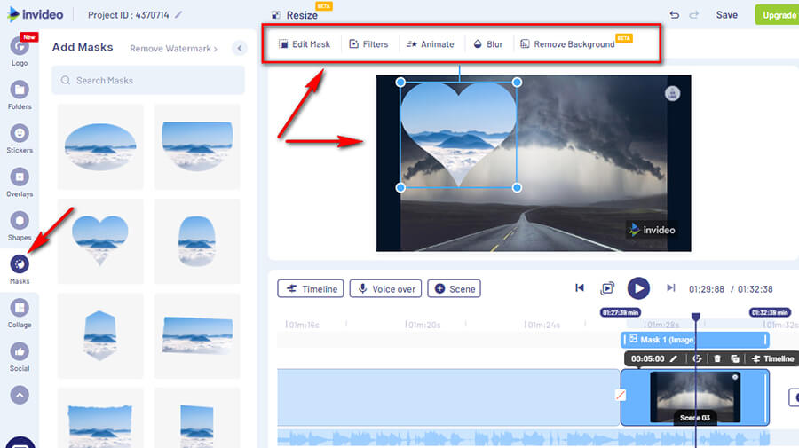 Шаг 10. Есть еще маски (папка Masks). Это рамки разной формы. Например, у вас есть основное видео, а поверх него можно добавить маску в виде сердечка, в котором будет проигрываться другое видео. Кстати, у масок есть отдельная панель для редактирования, где можно применить фильтр и анимацию, изменить размер маски.