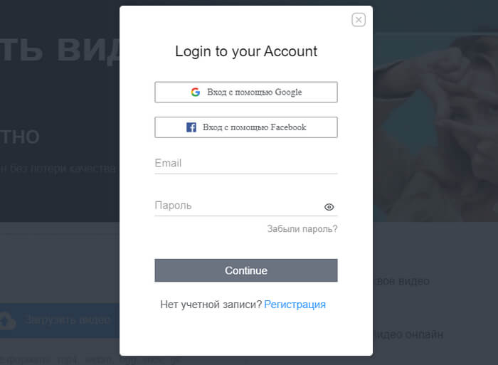 Шаг 1. Регистрируемся в сервисе. Переходим сюда или на главную страницу inVideo и жмем «Регистрация» (или Sign Up).