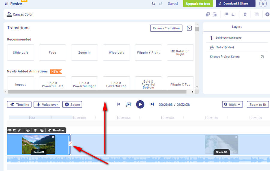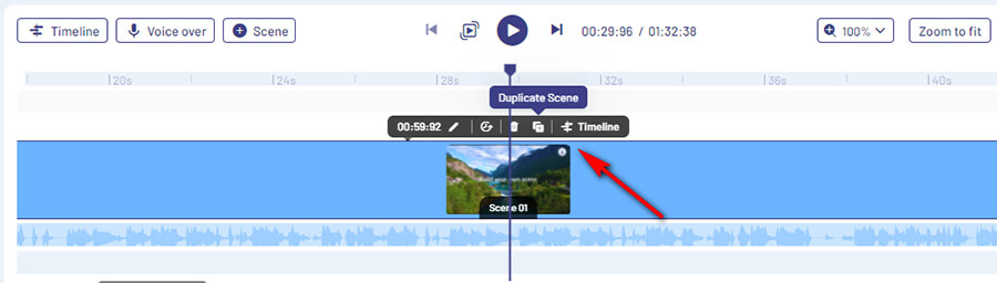 - можно обрезать фрагмент, удалить или дублировать сцену.