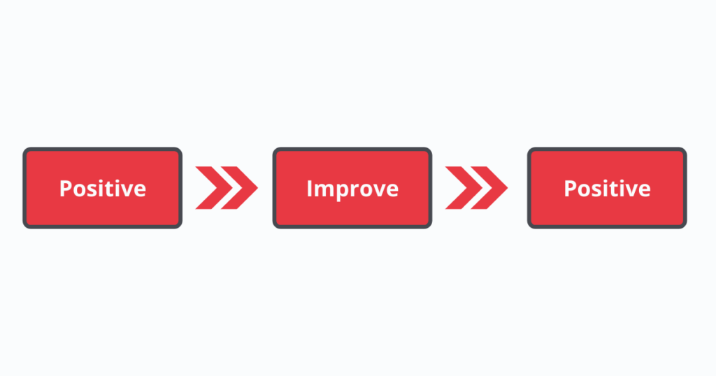 Человек не начинает сопротивляться, когда слышит о недостатках в работе, так как о достоинствах говорится больше. Важно обращать негативные предложения («Не делай так больше») в позитивные («На мой взгляд, эффективнее будет вот так») и действительно верить, что у собеседника все получится.