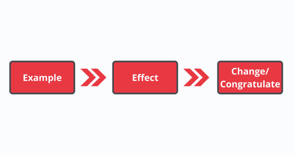 Result (Результат). Объясняем влияние действия или бездействия на личные результаты, работу команды, последствия для бизнеса и пр. с конкретными примерами. Важно, чтобы собеседник согласился соблюдать принятые стандарты.
