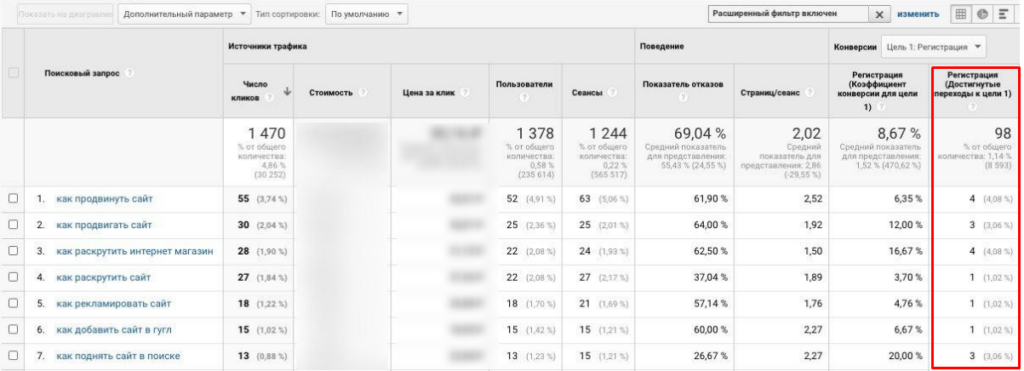 - Анализируйте запросы и исключайте те, которые вводят только специалисты. Как правило, это специфические запросы типа «как спарсить title», «как настроить htaccess» и т. д. Ваша целевая аудитория будет приходить по более общим фразам, связанным с рекламой.