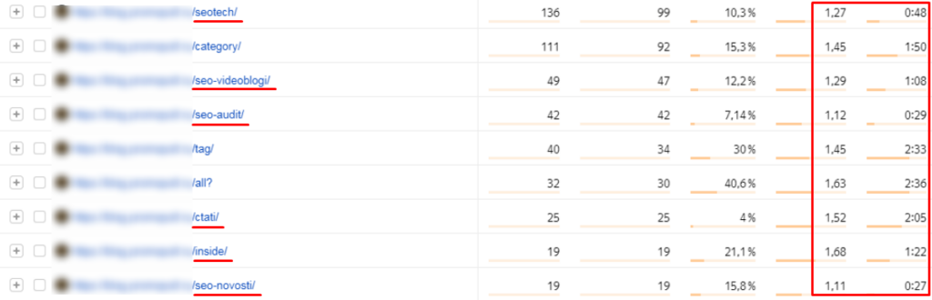 - Анализируем статистику посещаемости блога. Наша цель — выявить, какие рубрики наиболее интересны для посетителей. Для оценки эффективных рубрик смотрим не только на количество посещений, но обращаем внимание на глубину просмотра и время, проведенное на сайте.