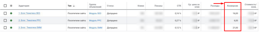 Ниже — пример аудиторий в Google Ads по сегментам из блога: