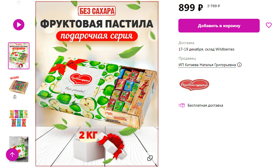 А вот тут неоднозначный пример. Стоит ли добавлять текст на фото с описанием преимуществ товара или характеристик? С одной стороны, если открыть карточку товара, текст читается хорошо. Но с другой, если опять-таки смотреть с главной или со страницы поиска, то все сливается. А ведь на карточку еще нужно перейти. Но тут изначально товар высокого спроса, поэтому у него есть продажи. Скорее всего, покупатели целенаправленно искали этот товар на Вайлдберриз. Но если продавать малоизвестный товар, то лучше обходиться без текста на фото.