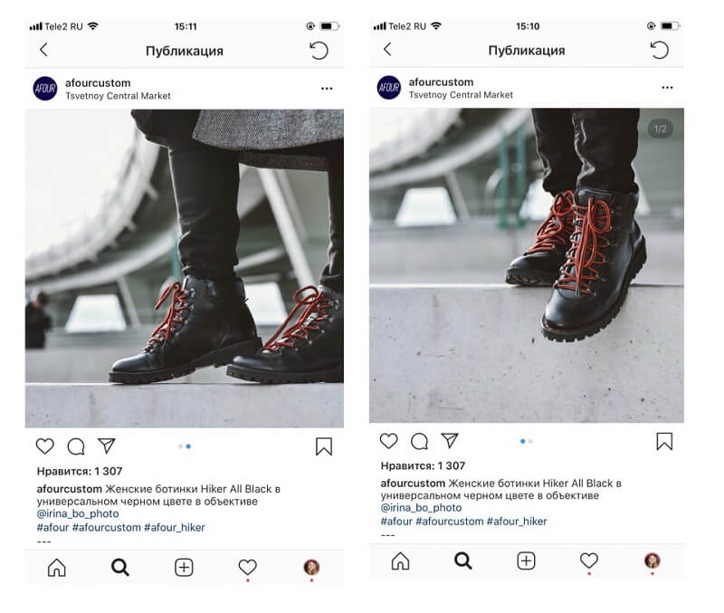 В одной публикации вы можете выкладывать и фото, и видео. О том, что в посте несколько файлов свидетельствует три точки под публикацией. Вы можете пролистать карусель и просмотреть все фотографии. Оставить комментарий под одной фотографией не получится, только под всем постом.