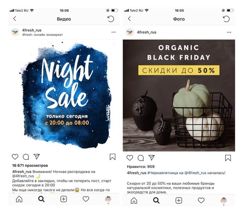 - Скидки и акции. Расскажите какие у вас проходят скидки и акции, в карусели покажите продукты, которые сейчас можно приобрести по выгодной цене. У вас, наверняка, есть аудитория, которая давно за вами наблюдает, но почему-то все еще не приобрела продукт. Акции отлично подтолкнут клиента к покупке.
