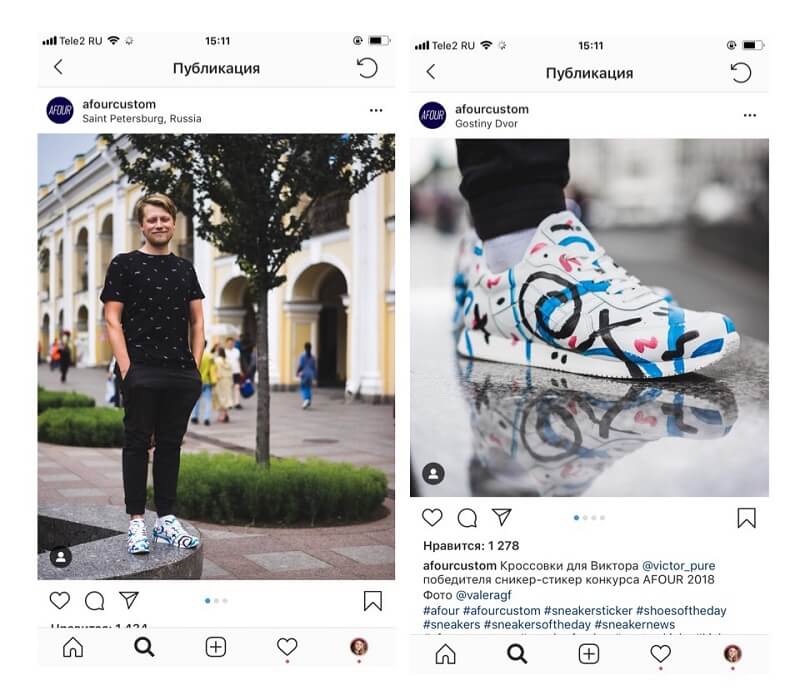 - Текст к посту, комментарии, хэштеги и геометки у всех фотографий будут одинаковые, а вот отметки могут быть разные. На каждом фото можно отмечать разных пользователей.