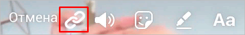 Затем вверху появится панель с инструментами для редактирования. Вы можете добавить текст и другие элементы, но не перегружайте запись информацией, помните, что она показывается пользователям в течение всего 15 секунд. Затем нажмите на значок ссылки, он выглядит как 2 звена цепи.