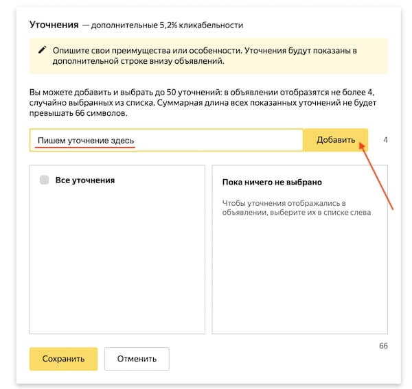 Как добавить уточнения в объявление в Директе