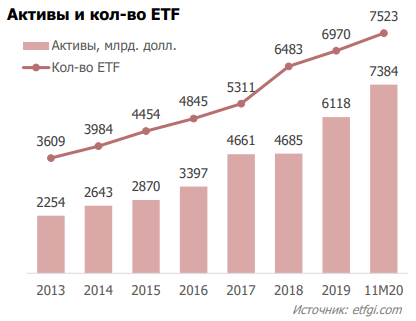 - Диаграмма роста количества ETF и активов в мире за 7 лет